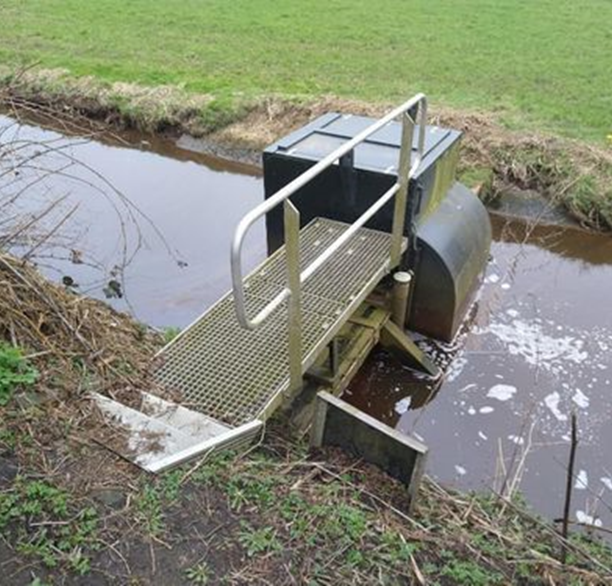 32) Beverstuw - Door mensen gemaakte bypass van buizen met een instelbare uitstroomhoogte