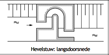 6) Hevelstuw - Stuw met een kokervormig verhoogd middengedeelte dat twee wateren met elkaar verbindt.