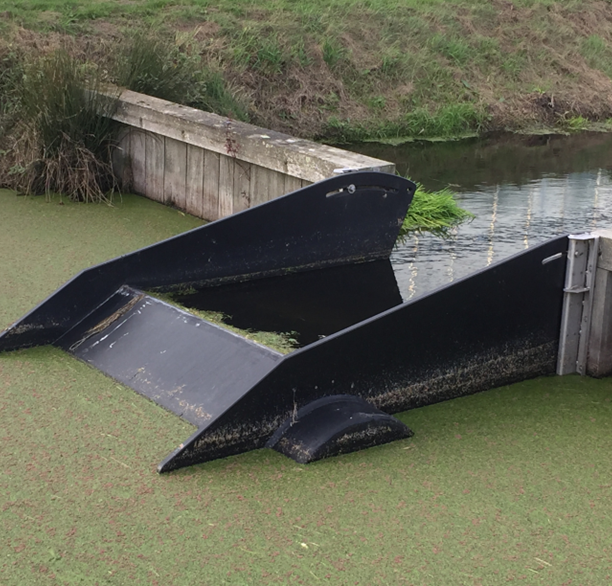 3) Klepstuw - Stuw met een beweegbare scharnierende klep.