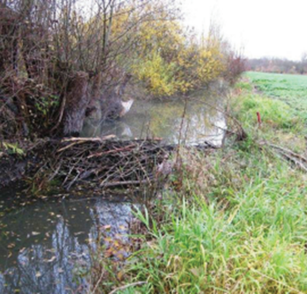 gecombineerd met een door bevers aangelegde constructie met stuwende werking .