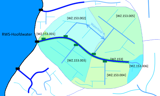 Toelichting: Het is een selectie van primaire of a-wateren binnen een beheergebied van een waterschap of regionale dienst die je op een schaal van 1:250.000 nog laat zien. Meestal ligt er een minimum aantal hectares of een minimale afwateringshoeveelheid per tijdseenheid ten grondslag aan het benoemen van deze voornaamste wateren.