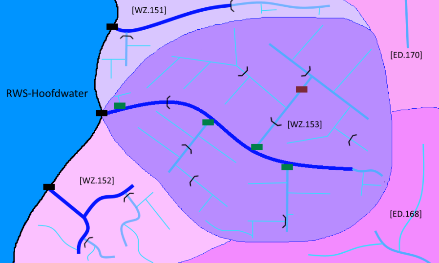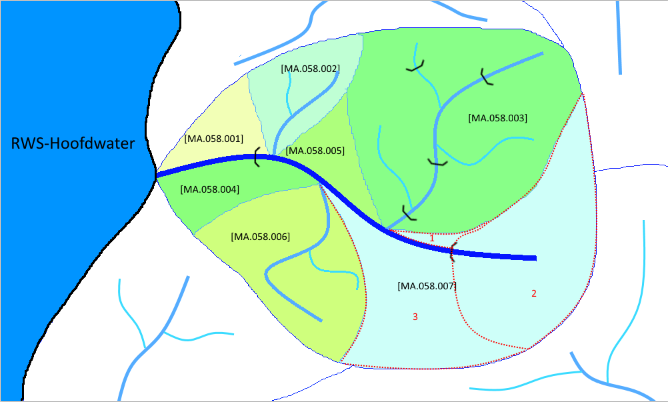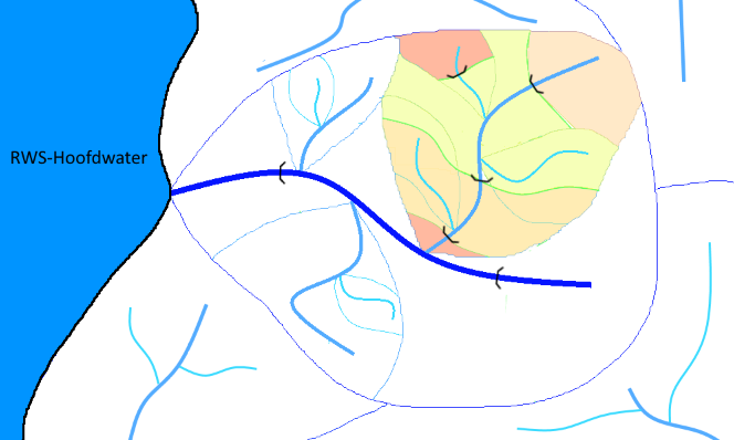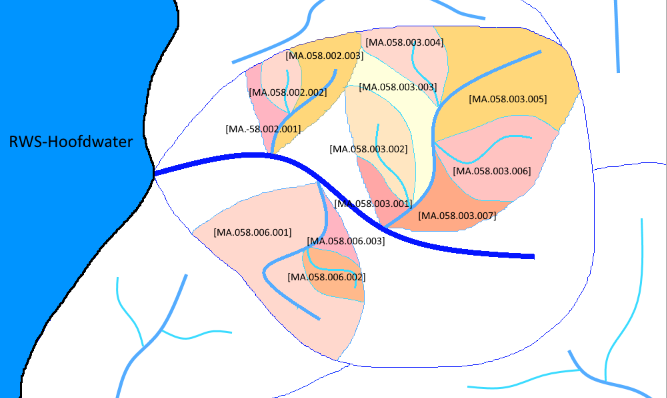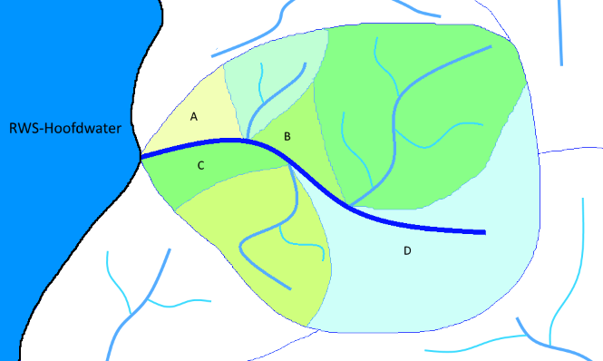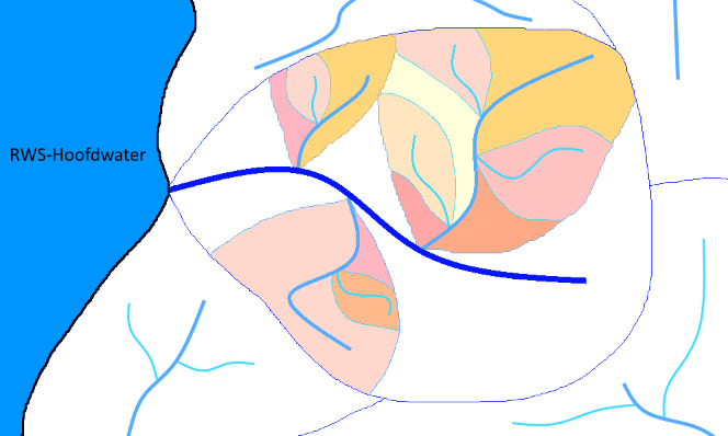 Er zijn in Nederland veel plekken aan te wijzen waar een waterstroom zich opsplitst of samenkomt met andere waterstromen, zodat je niet altijd eenvoudig kunt bepalen welk pad “een regendruppel” aflegt voordat deze de zee bereikt. Verder zullen sommige regendruppels via vrij verval de zee bereiken, maar andere moeten via één of meerdere punten naar zee worden gepompt. Deze verschillende situaties hebben invloed op hoe je de gebieden hydrologisch indeelt.