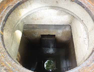 Verticale waterdichte constructie, toegepast om leidingen aan te sluiten, van richting of niveau te veranderen, om toegang te verschaffen aan personeel en/of apparatuur voor inspectie en onderhoud, en om beluchting en ventilatie mogelijk te maken. (bron: Aquo)